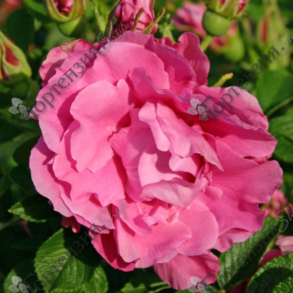 Красивая темно-зеленая листва украшена ароматными махровыми цветами. Цветки этого гибрида розы ругозы глубокого розового цвета, из 17-25 лепестков, с сильным ароматом, диаметром 5-6 см, в крупных, щитковидных соцветиях. Эти розы условно можно отнести к почвопокровным. Они также прекрасно подходят для бордюров, групповых и солитерных посадок. Хорошо переносят городские условия.