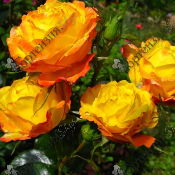 Роза полиантовая 'Rumba' (Rose polyantha 'Rumba') – относится к сортам розы полиантовой. Высота куста от 40 до 60 см., листья темно-зеленые, матовые. Цветки среднего размера с желто-красной окраской лепестков, шириной обычно 6-8 см, форма – классическая, чашевидная, с легким, приятным ароматом, цветет обильно и повторно, с начала лета и до самых заморозков. Отцветшие бутоны рекомендуется удалять, чтобы стимулировать появление новых. Место посадки выбирайте солнечное, защищенное от сильных ветров. Почвадолжна быть плодородная, хорошо дренированная, полив регулярный, особенно в жаркую погоду. Роза Румба прекрасно смотрится в групповых посадках, на клумбах, в розариях, а также в качестве солитера. Она отлично сочетается с другими цветами, особенно с лавандой, шалфеем и другими растениями с серебристой листвой.