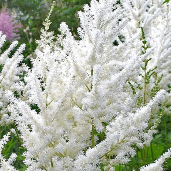 Астильба Арендса ‘Диамант’ — роскошный многолетник с пышными белоснежными соцветиями, напоминающими воздушные облака. Этот сорт ценится за обильное цветение, изысканную форму куста и высокую декоративность в течение всего сезона. Идеально подходит для тенистых садов, берегов водоемов и изысканных цветочных композиций.