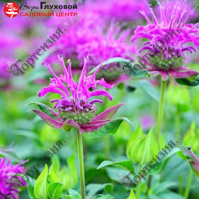 Монарда 'Скорпион' корневищное многолетнее растение. Высота 120 см, листья пальчато-рассечённые,зеленые. Цветки двухцветные, сиренево-розовые, собраны в колосовидные соцветия, цветут с июня по август. Морозостойкость -34С. Почвы предпочитает дренированные, кислые. Используется в миксбордерах, групповых посадках, в альпийских горках, бордюрной посадке и на срезку.