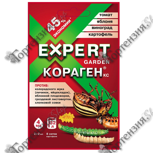 Эффективен против имаго, личинок всех возрастов и яиц вредителей (колорадского жука, плодожорки, гроздевой листовертки, хлопковой совки);
